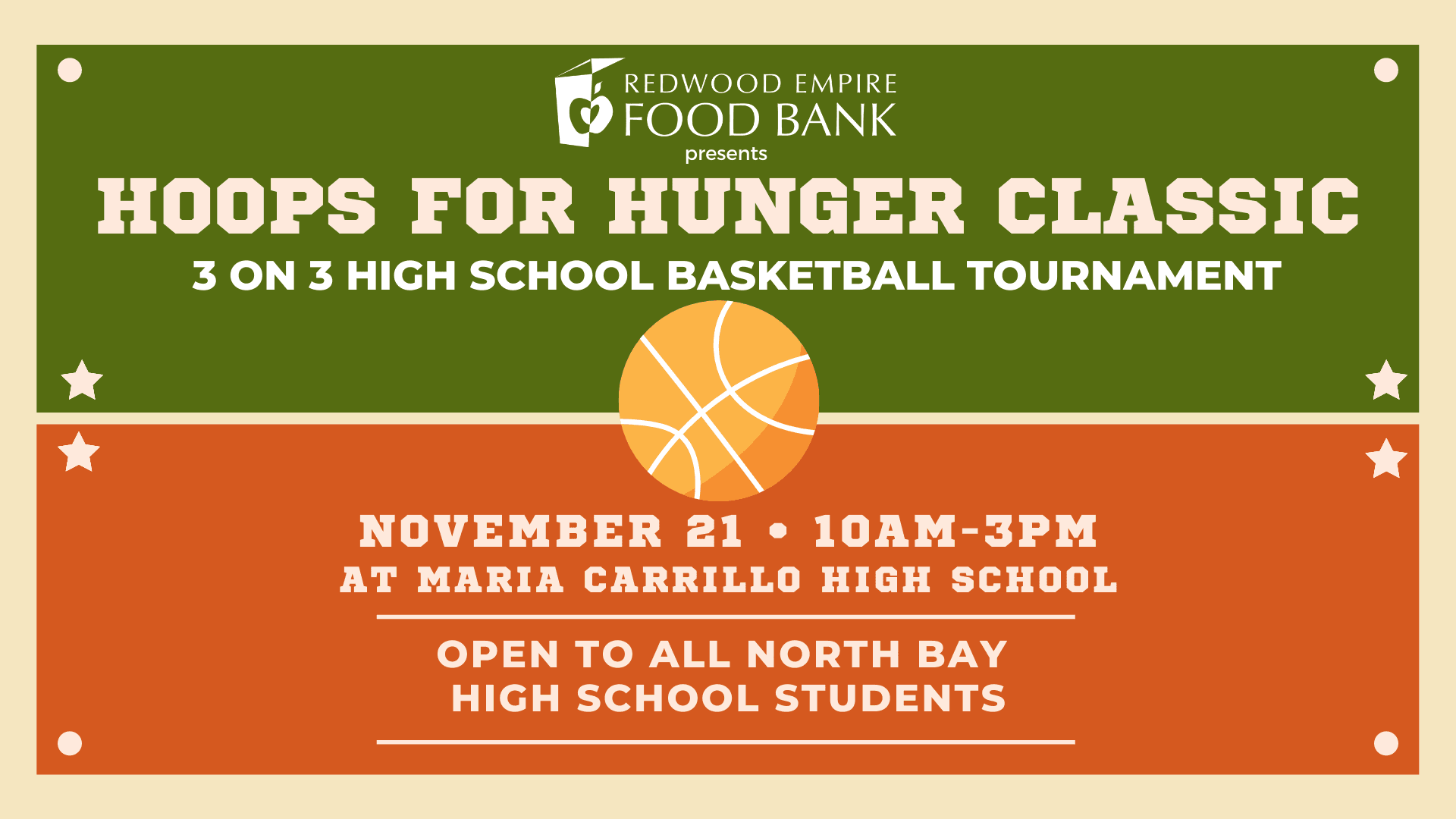 Join us for our first ever Hoops for Hunger Classic, a 3-on-3 basketball tournament open to all North Bay high school students!